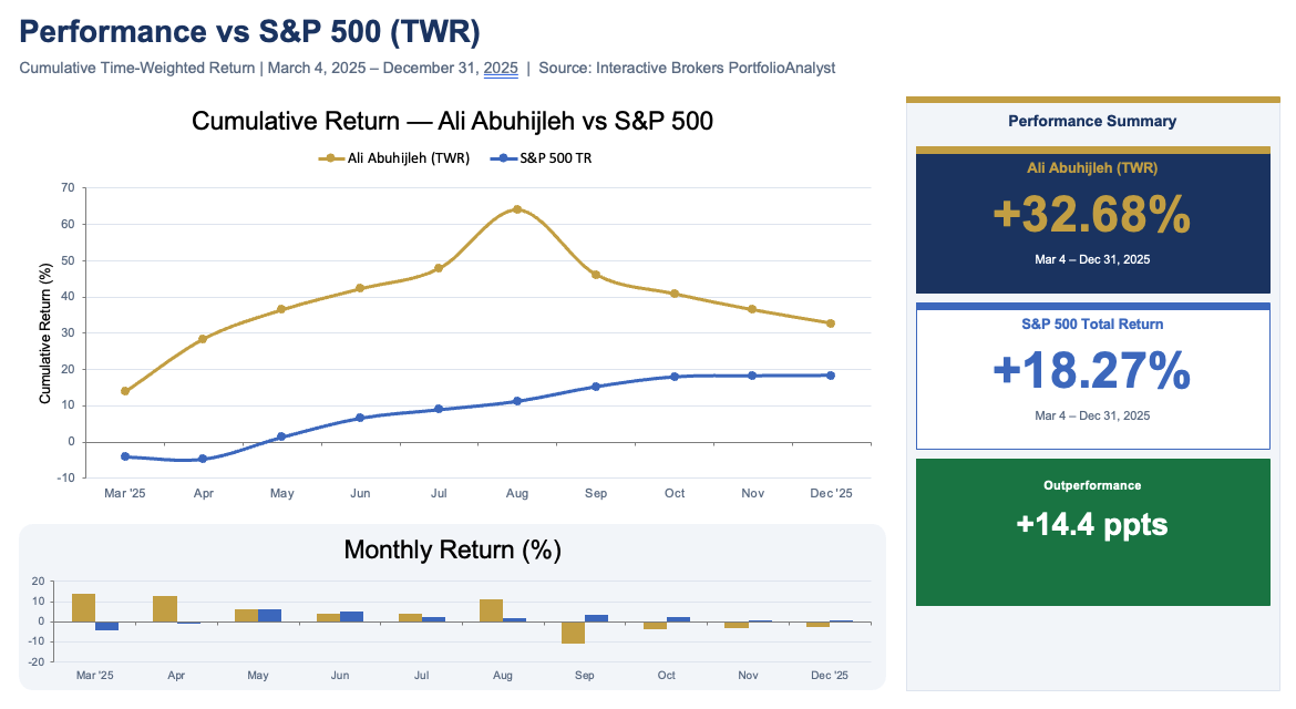 Actual performance of my portfolio since the start of the group as reported by Interactive Brokers platform